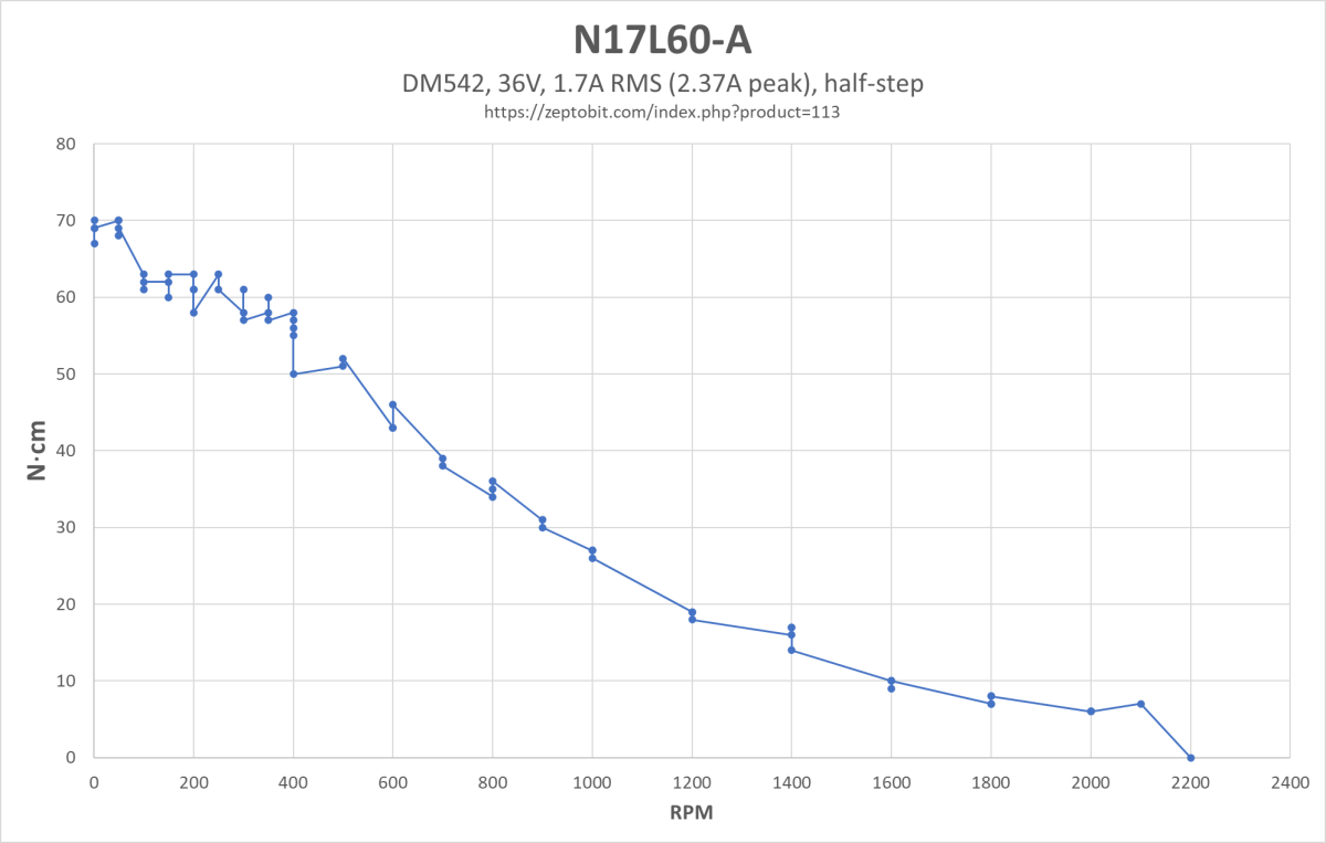 NEMA17 Stepper motor, 60mm lang, 1700mA, 70N-cm. 30cm kabel inkludert.